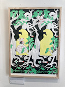北澤さんの作品の全てを知るわけではないですが、明るくてカラフルというイメージがありましたから色を絞った表現は新鮮でしたし、特に黒(不安というスパイス?)が絵を引き締め、その黒が白を美しく引き立たせていました。色を絞ることによりデザインが際立ち、対称性そして連続性の絶妙なずらし加減も面白く、いつしか私も北澤ワールドの森に迷い込んだ気分に。
